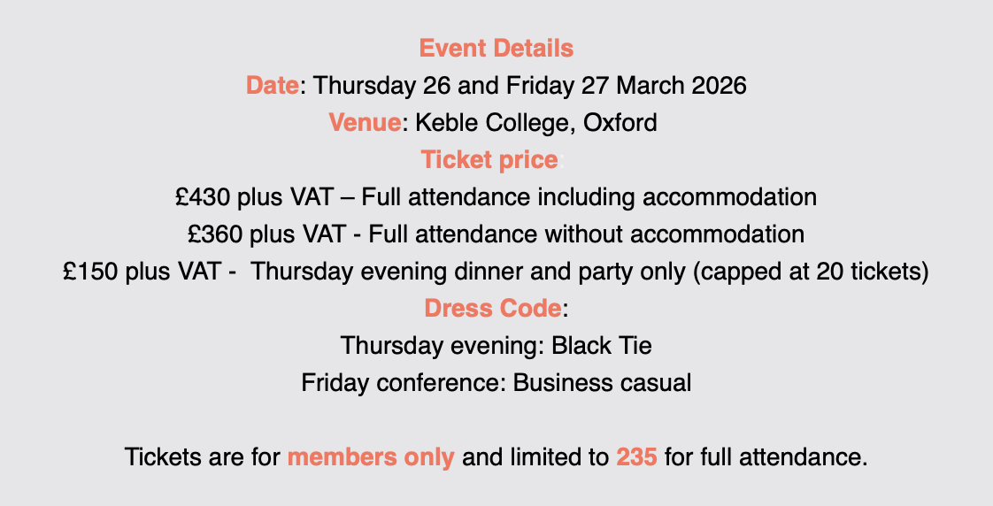 The Executive Committee are delighted to invite you to this year’s Annual Conference and Dinner to be held once again at Keble College, Oxford.